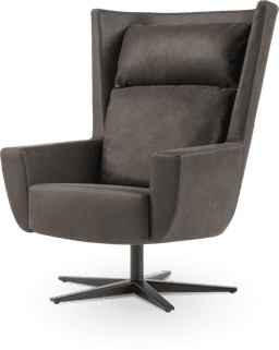 Echo lenestol utført i en Mocca farget nubuck lær med understell i sort stål selges fra utstilling.